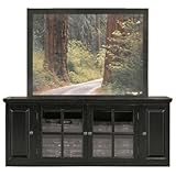Riley Holliday 83162 20in. Plasma TV Stand, Black Rub Finish:Black Rub This 62' wide Plasma TV cart has a hand rubbed black finish with light distressing and is made of solid wood and wood veneers. Features multiple component storage with one adjustable shelf behind two decorative wood / glass doors with tempered glass and cord management holes for multiple components. The side bookcase media storage with one adjustable shelf each side, holds 136 plus DVD's. Assembles easily in minutes with our hinge method construction.